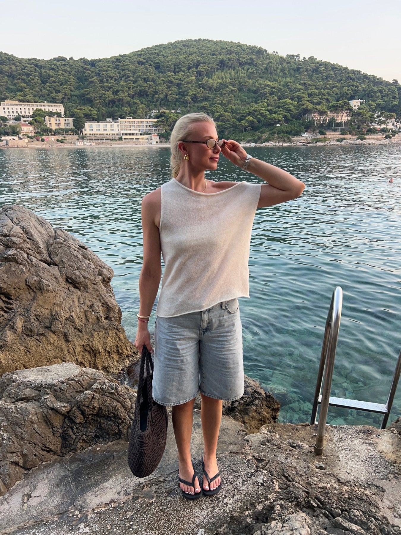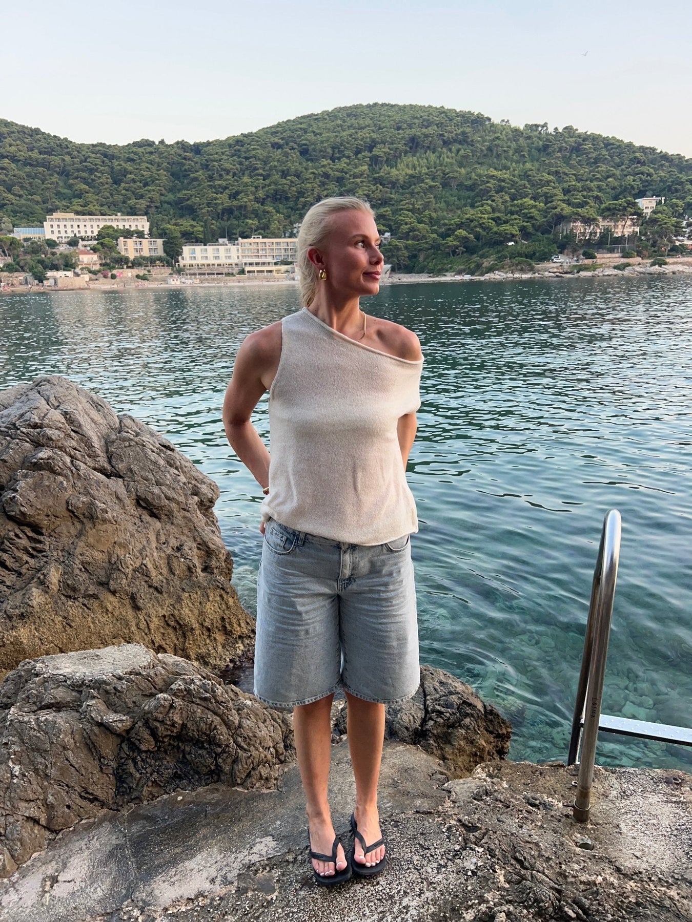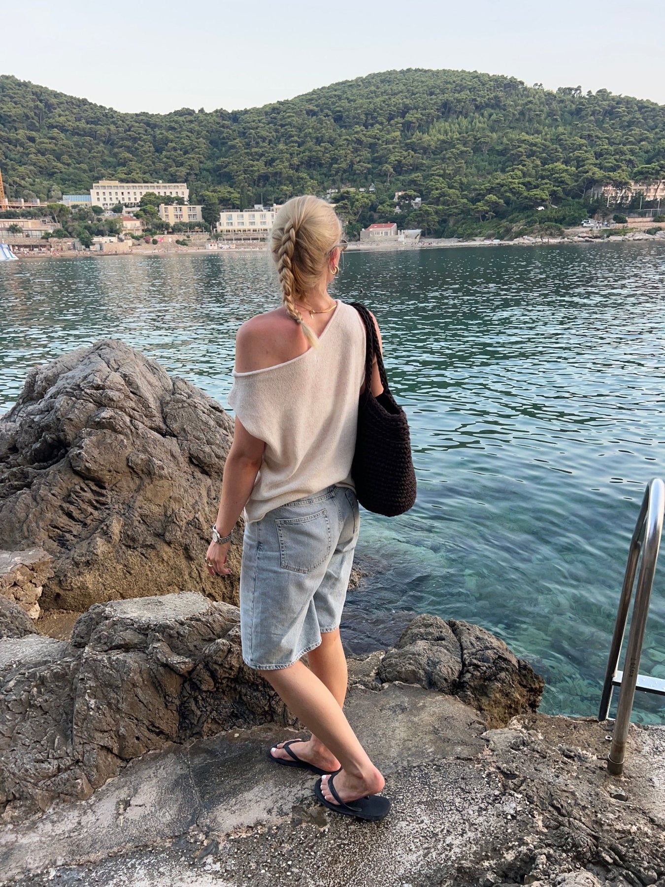 Skapa en modern, enkel look med denna asymmetriska stickade topp i en elegant mörkbrun nyans. Det mjuka, lätt stretchiga tyget formar sig smickrande efter kroppen, medan designen med en axel ger en cool och sofistikerad twist till din vardagsstil.