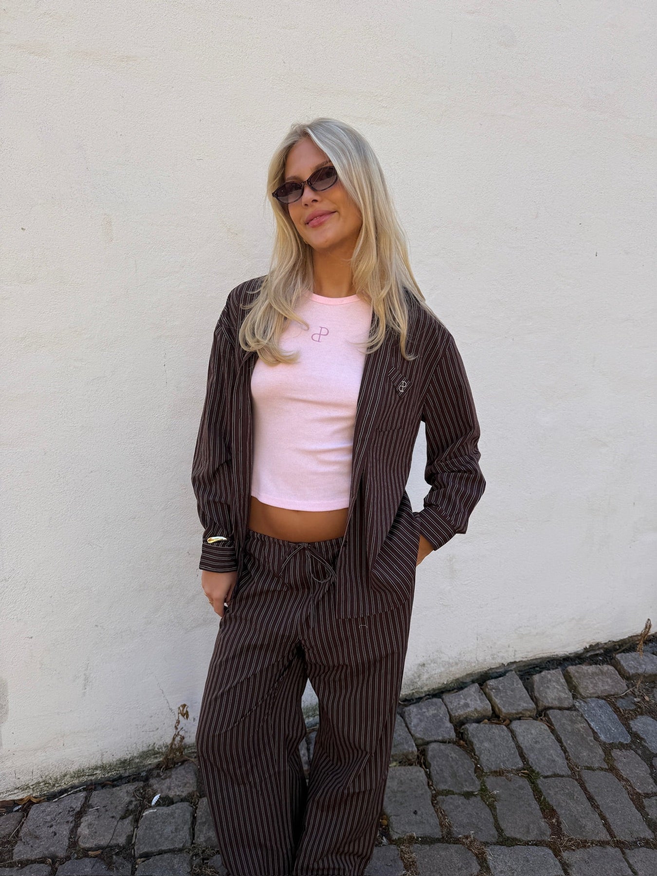 A simple and timeless top with a fitted fit and a high, rounded neck. The design emphasizes the shoulders and creates a sporty yet feminine look. The short length makes it ideal for high-waisted pants, shorts and skirts.