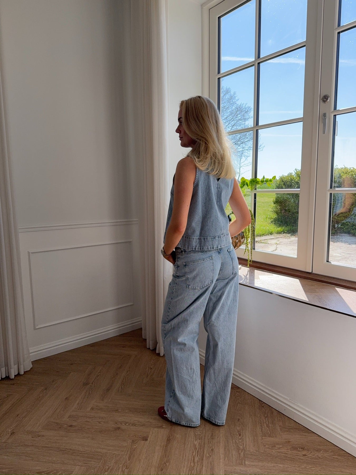 Denim has never looked better! Our Denim Tank Top is designed in the most beautiful light blue color, adding a fresh and stylish touch to your wardrobe. With its modern fit, short sleeves and raw yet sophisticated denim look, it's a must-have for both everyday and formal occasions.